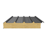 Толщина кровельных сэндвич-панелей варьируется от 50 до 300 мм, что позволяет выбрать оптимальное решение под регион эксплуатации и особенности объекта. Утеплитель из минеральной ваты обеспечивает надёжную тепло- и звукоизоляцию, а жесткие внешние оцинкованные металлические листы с антикоррозийным полимерным покрытием устойчивы к влаге, ультрафиолету и механическим повреждениям. Специальный профиль верхнего листа формирует дополнительное ребро жёсткости и улучшает водоотвод, препятствуя застою осадков на крыше.